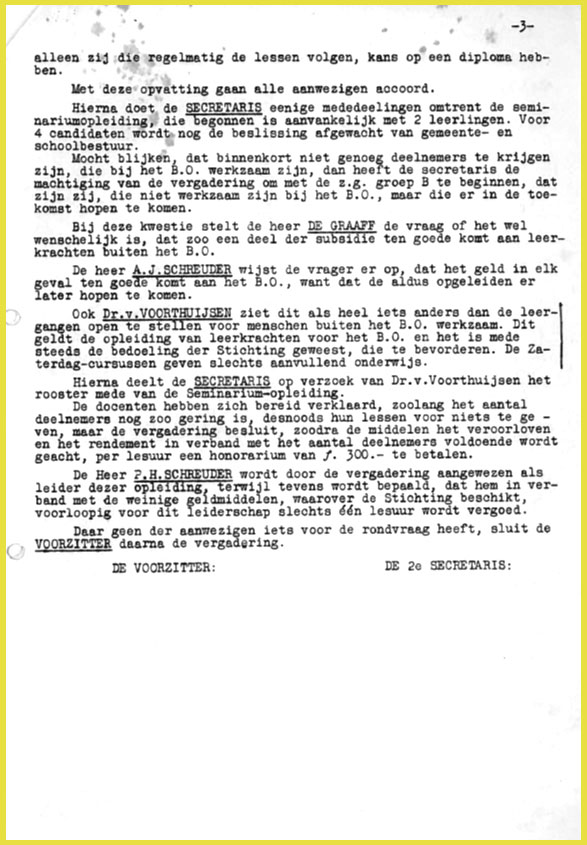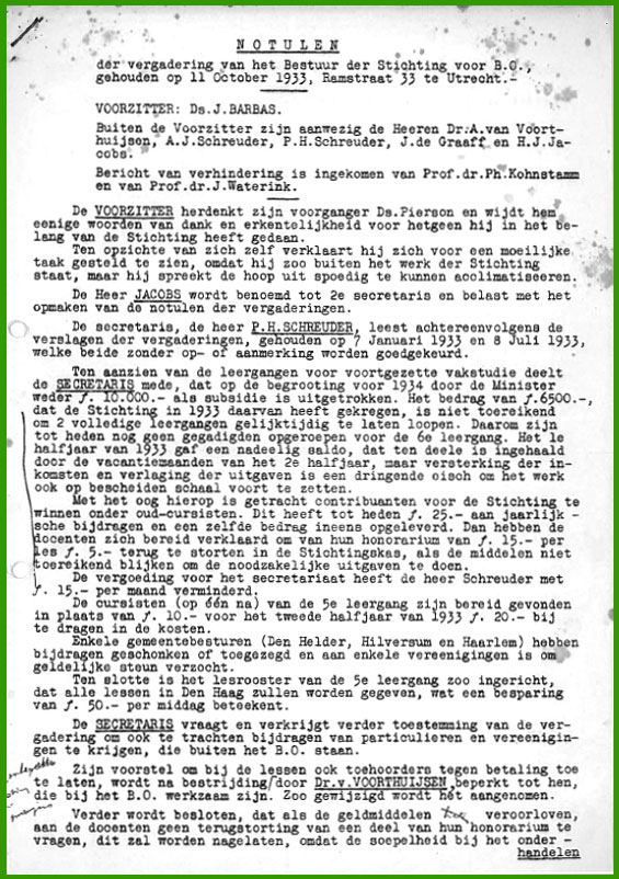 U ziet hier de originele notulen 'der vergadering van het Bestuur der Stichting voor B.O.